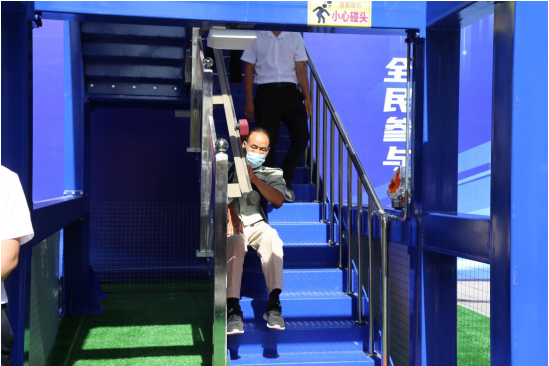 上午,在灃西新城天福和園小區觀摩現場,通過1:1還原了樓梯逃生通道內安裝的逃生設備狀態。現場隨機邀請到小區居民、老人和兒童演示該系統的使用情況。72 歲的張大爺在演示該系統逃生效果后,稱贊道:“這個裝置很好,特別是像我們這些老年人腿疼、腿腳不好的,有火災、地震、停電的時候,從高層往下滑,快速安全,速度還可以控制,適合老年人。”