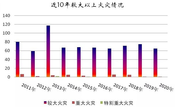 近日,應(yīng)急管理部消防救援局發(fā)布了2020年全國(guó)火災(zāi)情況。去年全年,全國(guó)消防救援隊(duì)共接報(bào)火災(zāi)25.2萬(wàn)起,未發(fā)生特別重大火災(zāi),較大火災(zāi)穩(wěn)中有降,一般火災(zāi)形勢(shì)總體向好。