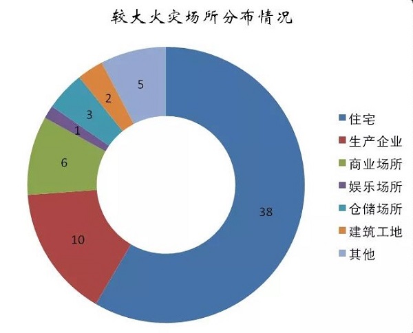 從大火的分布看,這幾類(lèi)場(chǎng)所的火災(zāi)只占總數(shù)的11.6%,但其中過(guò)火面積在1000平方米以上的火災(zāi)占總數(shù)的26.4%;較大以上火災(zāi)23起,占總數(shù)的34.8%,特別是全年唯一的1起重大火災(zāi)就發(fā)生在娛樂(lè)場(chǎng)所。